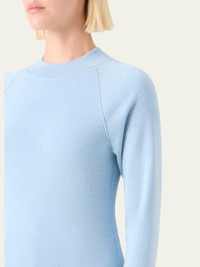 Akris sweater knit in a cashmeresilk rib Funnel neckline Long raglan bracelet sleeves Slim fit Pullover style Cashmere/silk Dry clean Made in Romania