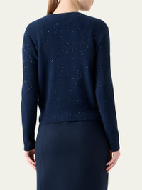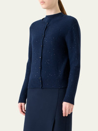 Paillette Wool-Cashmere Knit Crewneck Cardigan