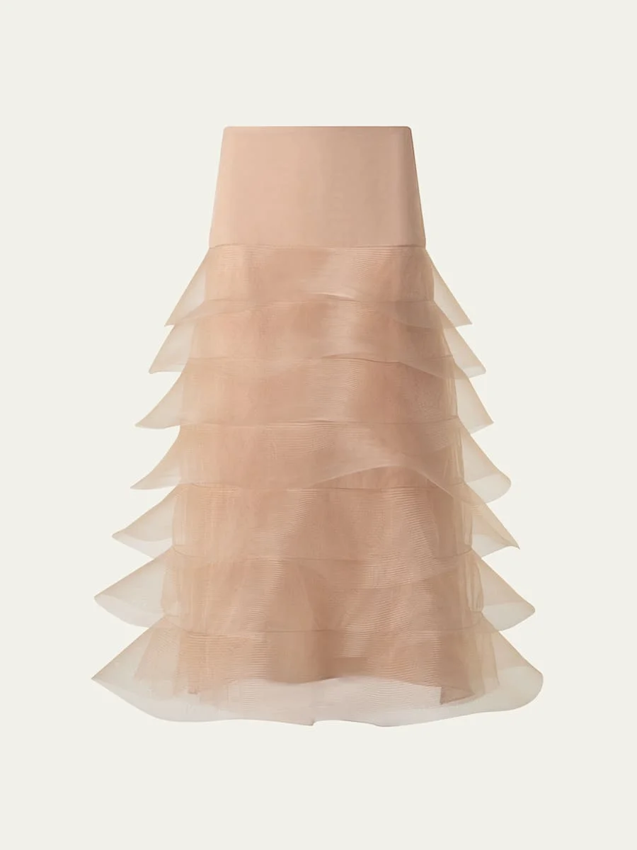 Ruffle Tulle Midi Skirt