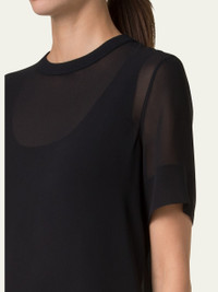 Akris tunic dress crafted from silk georgette Round knit neckline Short sleeves Mini side slits Hem hits around the knee Slipover style Silk Dry clean Made in Switzerland Online Inquiries: BGS21_B9JZF| Store Inquiries: #4888074