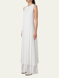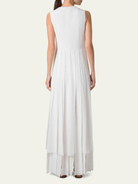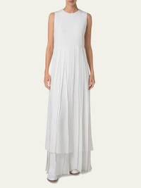 Akris pleated gown in silk crepe with silk ribbon skirt Crew neckline Sleeveless Full length A-line silhouette Invisible back zipper Silk/nylon/polyamide/silk Lining: Viscose/silk Dry clean Made in Romania Online Inquiries: BGS21_B9QGN| Store Inquiries: #4944428