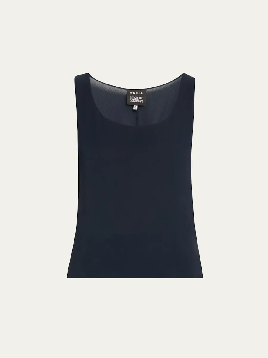 Akris silk shell. Scoop neckline. Sleeveless; minimal shoulder coverage. Fitted silhouette. Roll-edge hem. Made in Romania. Model is 5'10"/177cm. Online Inquiries: BGS21_TSJWL| Store Inquiries: #9191