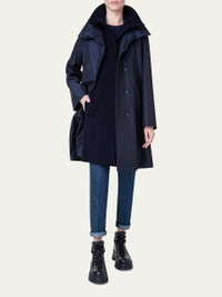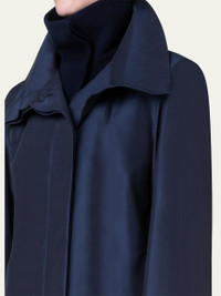 Akris storm system coat. Double-breasted button front. Silk; trim, wool/cashmere/. Lining, cupro. Dry clean. Imported. Model is 5'10"/177cm. Online Inquiries: BGS21_B8KKD| Store Inquiries: #72340