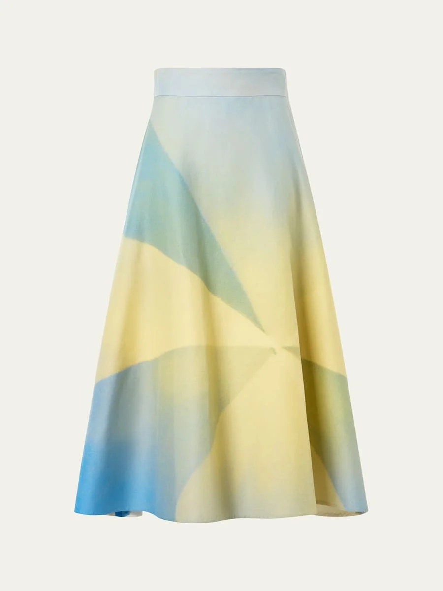 Akris skirt is crafted of cotton double weave with a sunbeam print High waist Hem falls below the knee Flare silhouette Invisible back zip Cotton Lining: Viscose/elastane Dry clean Made in Romania
