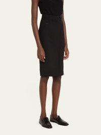 Trapezoid Buckle Wrapped Wool Pencil Skirt