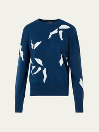 Knit with a Whitecaps intarsia motif, this Akris sweater reflects the house's signature craftsmanship reimagined with a modern, artistic edge Crew neckline Long sleeves Dropped shoulders Ribbed cuffs and hem Relaxed fit Pullover style Cashmere/cotton/nylon/polyamide Made in Romania