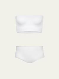 Knitted second-skin fit ALAIA bandeau bra and briefs set Thin and invisible elastic trims Strapless neckline Sleeveless Pullover style Sits low on the waist Full seat coverage Nylon/polyamide/elastane Dry clean Made in Italy Online Inquiries: BGS21_I2SFH| Store Inquiries: #4982586