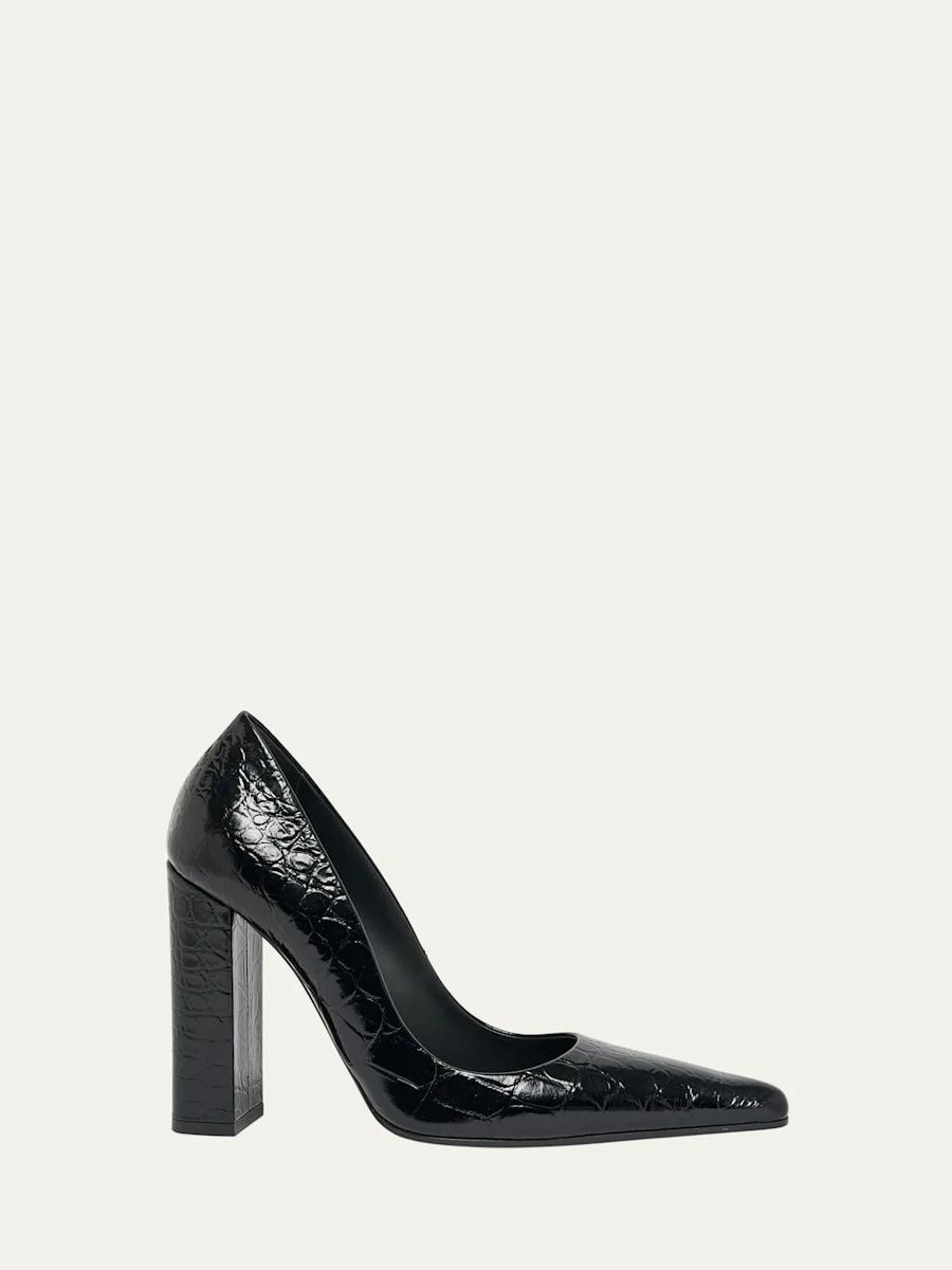 Embossed with a textured crocodile design, these pumps by ALAIA are crafted from calf leather with a leg-elongating silhouette 3.50 in / 90 mm covered block heel Pointed toe Slip-on style Leather lining and outsole Professional cleaning recommended Made in Italy Online Inquiries: BGS21_X6ZM9| Store Inquiries: #5073108