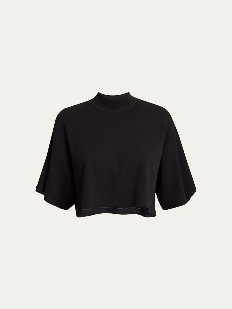 ALAIA high-neck t-shirt Dropped shoulders Short sleeves Relaxed fit Cropped length Pullover style Cotton/nylon/polyamide/wool Made in Italy Online Inquiries: BGS21_BA3J5| Store Inquiries: #5025285