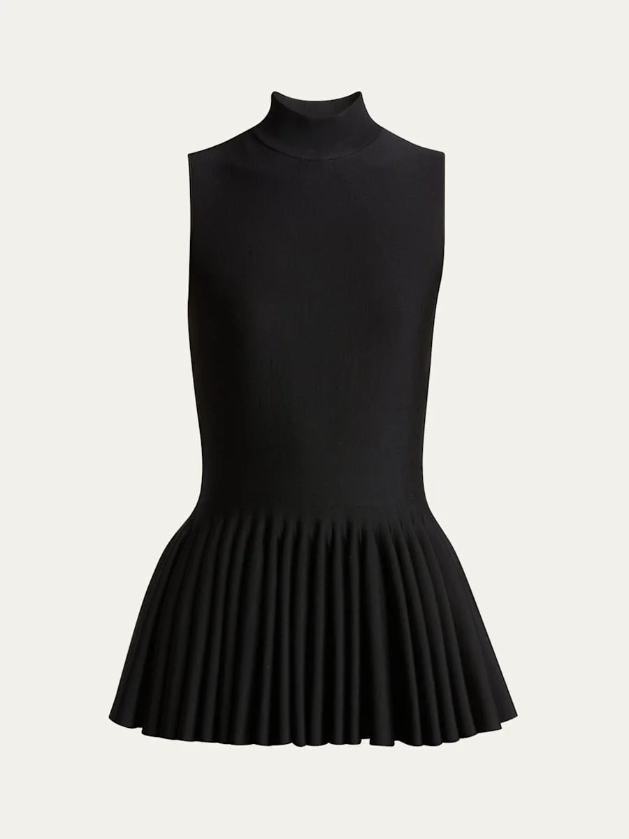 ALAIA top with a pleated hem High neckline Sleeveless Fitted Peplum hem Slipover style Viscose/wool/nylon/polyamide Dry clean Made in Italy Online Inquiries: BGS21_B9VHN| Store Inquiries: #4982550