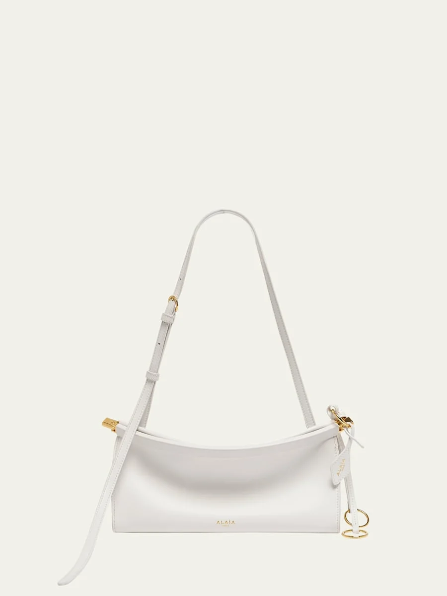 ALAIA "Le Click" eastwest shoulder bag in glossy leather Adjustable shoulder strap Can be worn as a shoulder or crossbody bag thanks to an adjustable strap Frame top with side hinges; keyring tags Lining: Leather Approx. 4.3"H x 9.8"W x 2.8"D Made in Italy