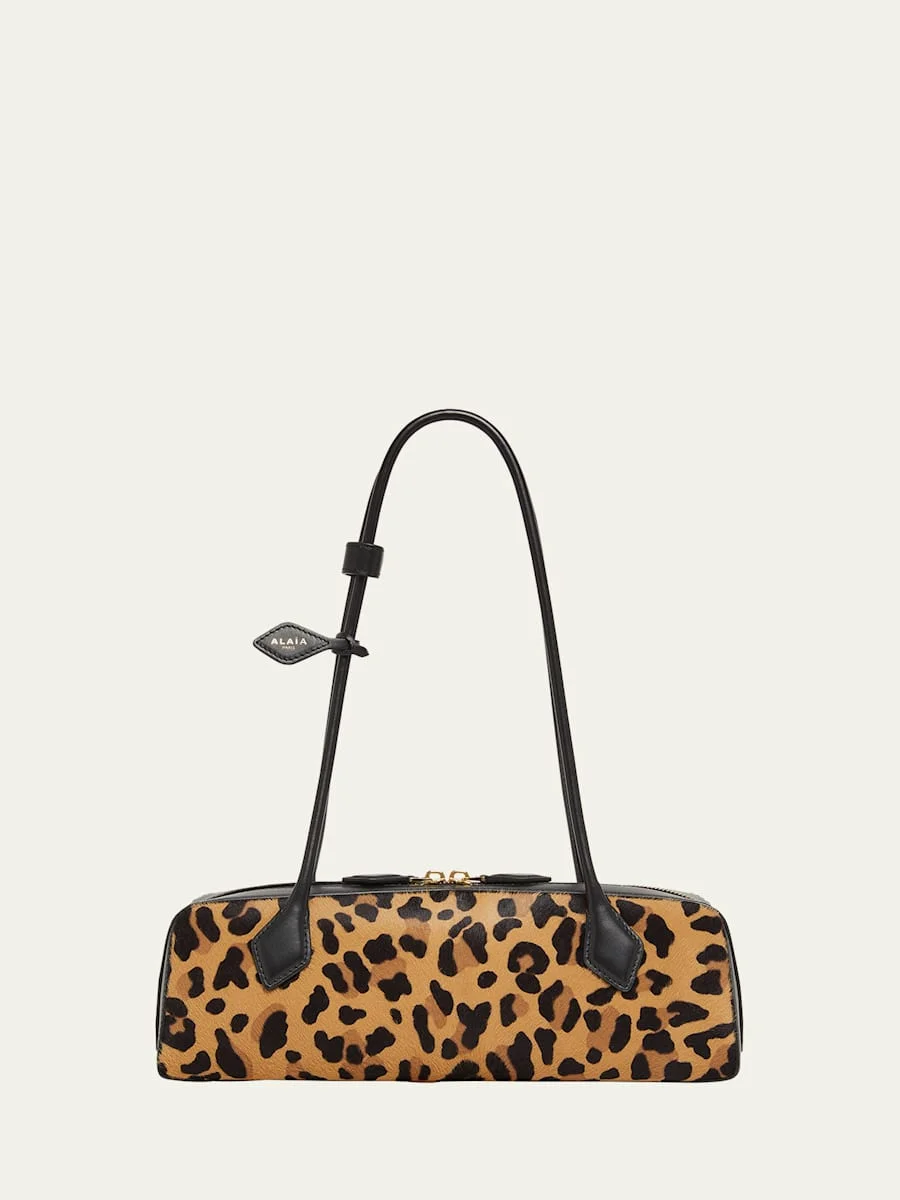 Crafted in natural and dyed leopard-effect calf hair (Italy), the ALAIA "Le Teckel" slim medium shoulder bag is finished with smooth leather details Rolled shoulder straps Two-way zip top closure Interior, two card slots Lining: Leather Approx. 4.3"H x 13"W x 3.9"D Made in Italy Online Inquiries: BGS21_V6JYY| Store Inquiries: #5025288