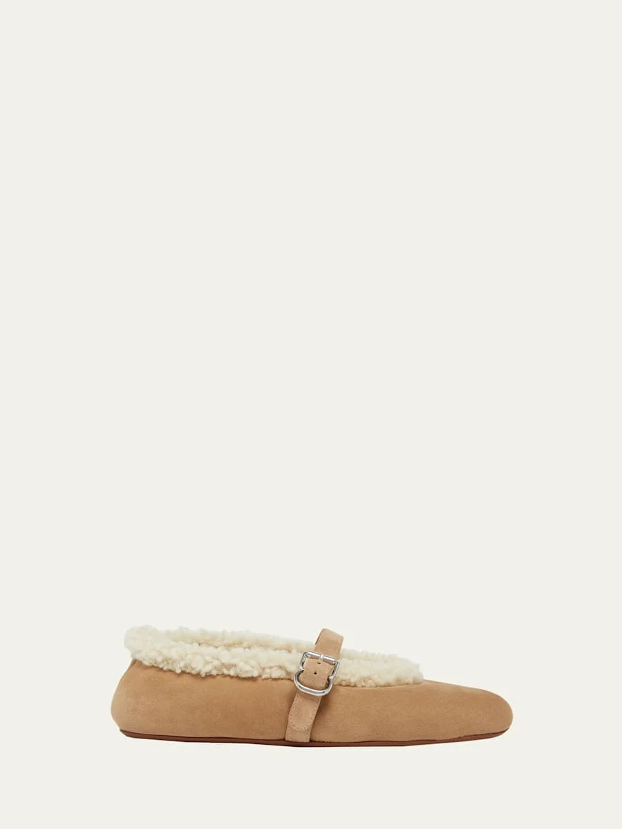 Merino Suede Shearling Mary Jane Ballerina Flats