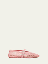 ALAIA mesh net ballerina flats with patent leather trim Round toe Adjustable Mary Jane buckle Leather/Rubber outsole Made in Italy Online Inquiries: BGS21_X6ZCN| Store Inquiries: #4218516