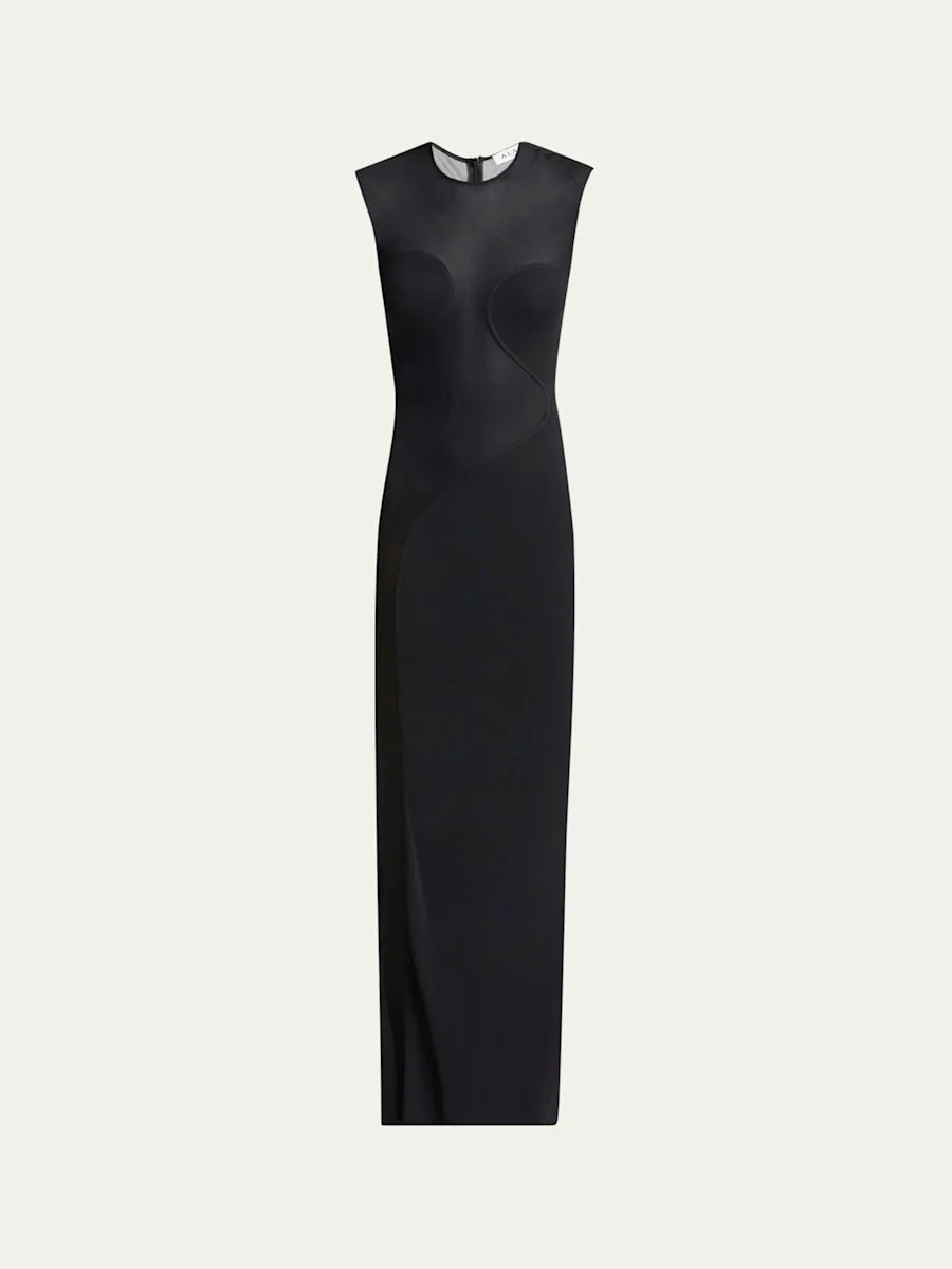 ALAIA mesh molded gown with cutout detail Jewel neckline Cap sleeves Body-conscious silhouette Full length Back zip Viscose/polyester Dry clean Made in Italy Online Inquiries: BGS21_B9VHY| Store Inquiries: #4982592