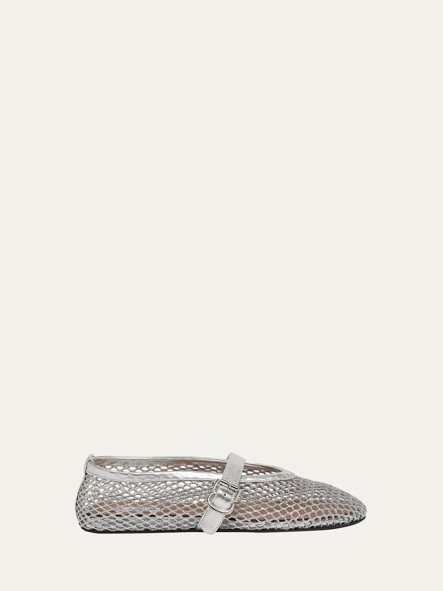 ALAIA metallic nylon net ballerina flats Round toe Mary Jane buckle strap Rubber outsole Lining: Leather Made in Italy Online Inquiries: BGS21_X6CRN| Store Inquiries: #4670172