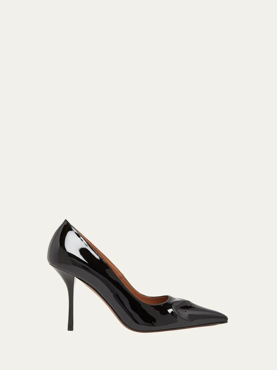 ALAIA patent leather pumps with signature 3D coeur detail 3.50 in / 90 mm stiletto heel Pointed toe Slip-on style Leather/Rubber outsole Lining: Leather Made in Italy Online Inquiries: BGS21_X6XAA| Store Inquiries: #5033629