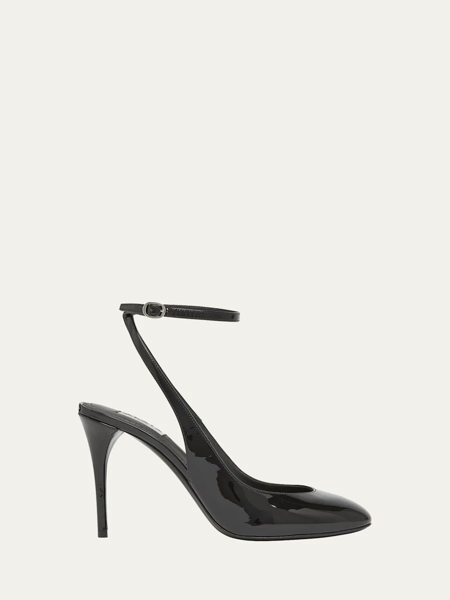 ALAIA patent calf leather slingback pumps 4.00 in / 100 mm covered stiletto heel Round toe Adjustable halter ankle strap Leather/Rubber outsole Lining: Leather Made in Italy Online Inquiries: BGS21_X6SFH| Store Inquiries: #4935652