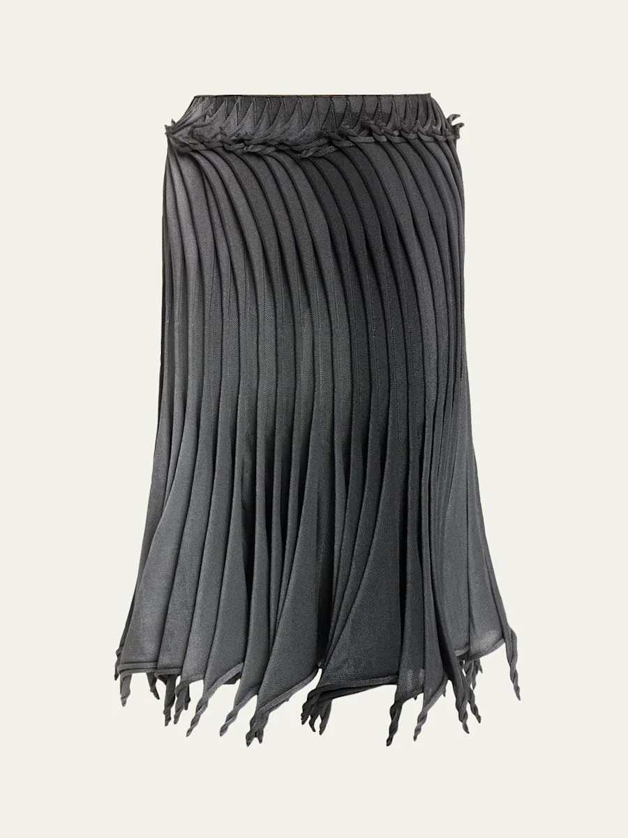 An architectural take on femininity, this ALAIA skirt flows with sculptural pleated volume and its twisted hem adds a modern twist to classic elegance. Mid waist Hem falls below the knee A-line silhouette Pull-on style Nylon/polyamide/polyester Dry clean Made in Italy Online Inquiries: BGS21_T7KLA| Store Inquiries: #5174183