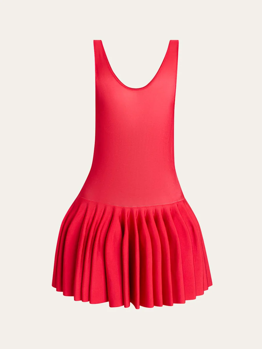 Pleated jersey and stretch-knit mini dress Red