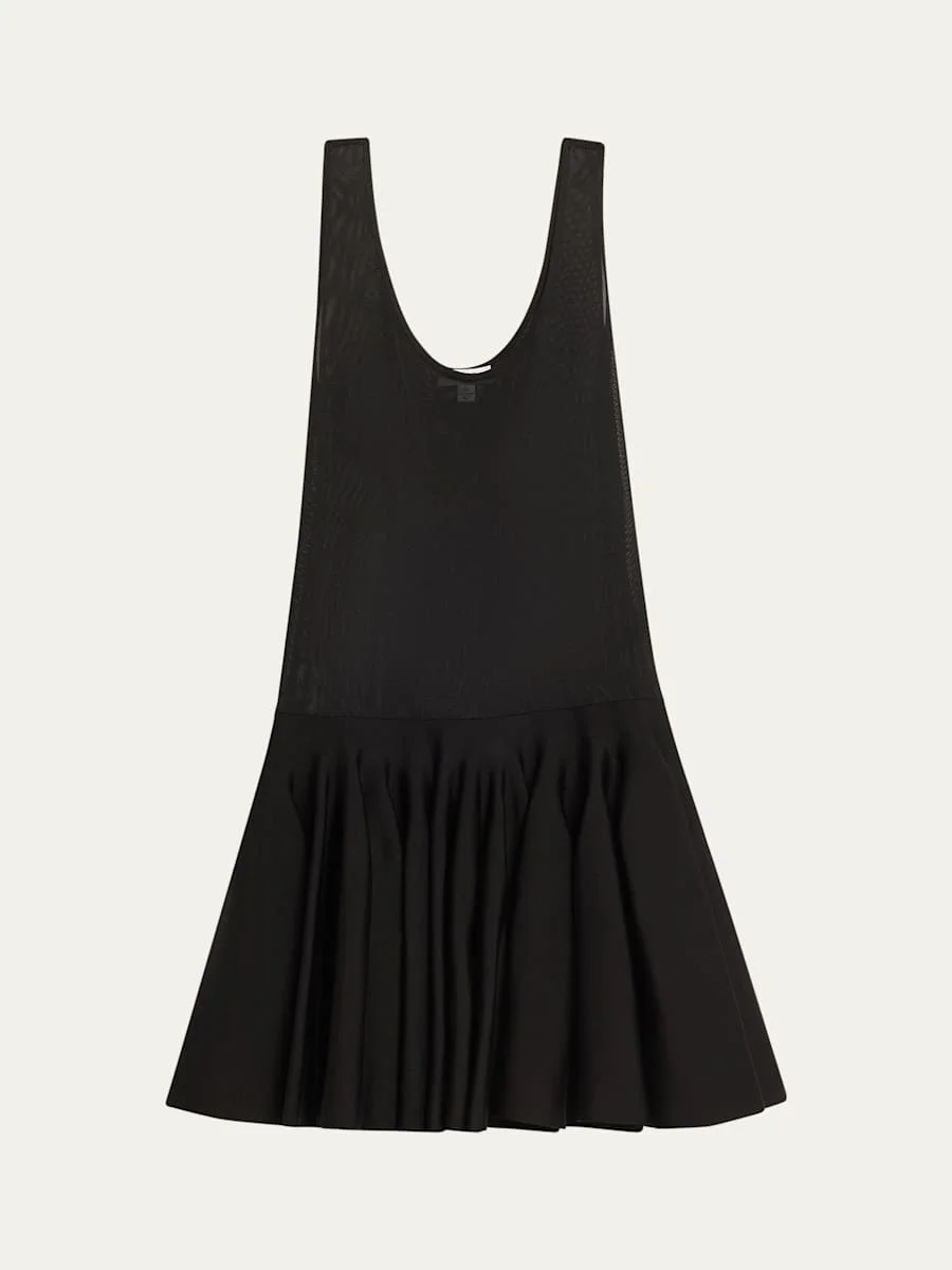 ALAIA dress featuring a drop waist and a flare skirt Scoop neckline Sleeveless Fit-and-flare silhouette Mid-thigh length Slipover style Nylon/polyamide/elastane/viscose Dry clean Made in Italy Online Inquiries: BGS21_B9VH8| Store Inquiries: #4982543