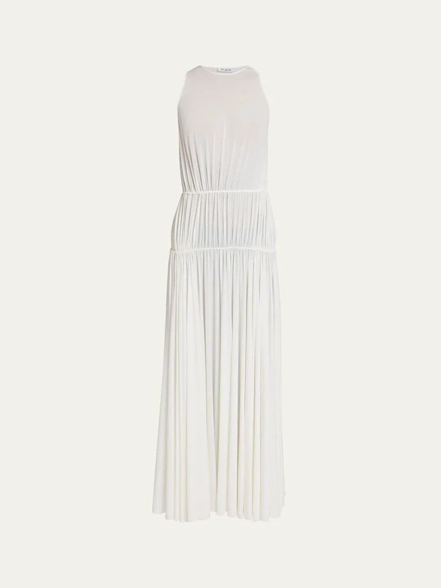 ALAIA pleated maxi dress Crew neckline Sleeveless Dropwaist silhouette Hem falls below the knee Slipover style Viscose/elastane Made in Italy