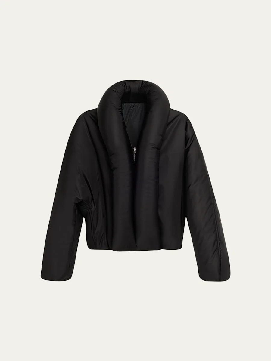 Fashioned from taffeta in an oversized, padded silhouette, this bomber jacket by ALAIA offers a functional, statement-making design with endless versatility Padded tubular lapels; front zip closure Long sleeves; gathered cuffs Side-entry pockets Hip length Gathered waist Nylon/polyamide/polyurethane Lining: Nylon Fill: Nylon Dry clean Made in Italy Online Inquiries: BGS21_T8QNW| Store Inquiries: #5358510