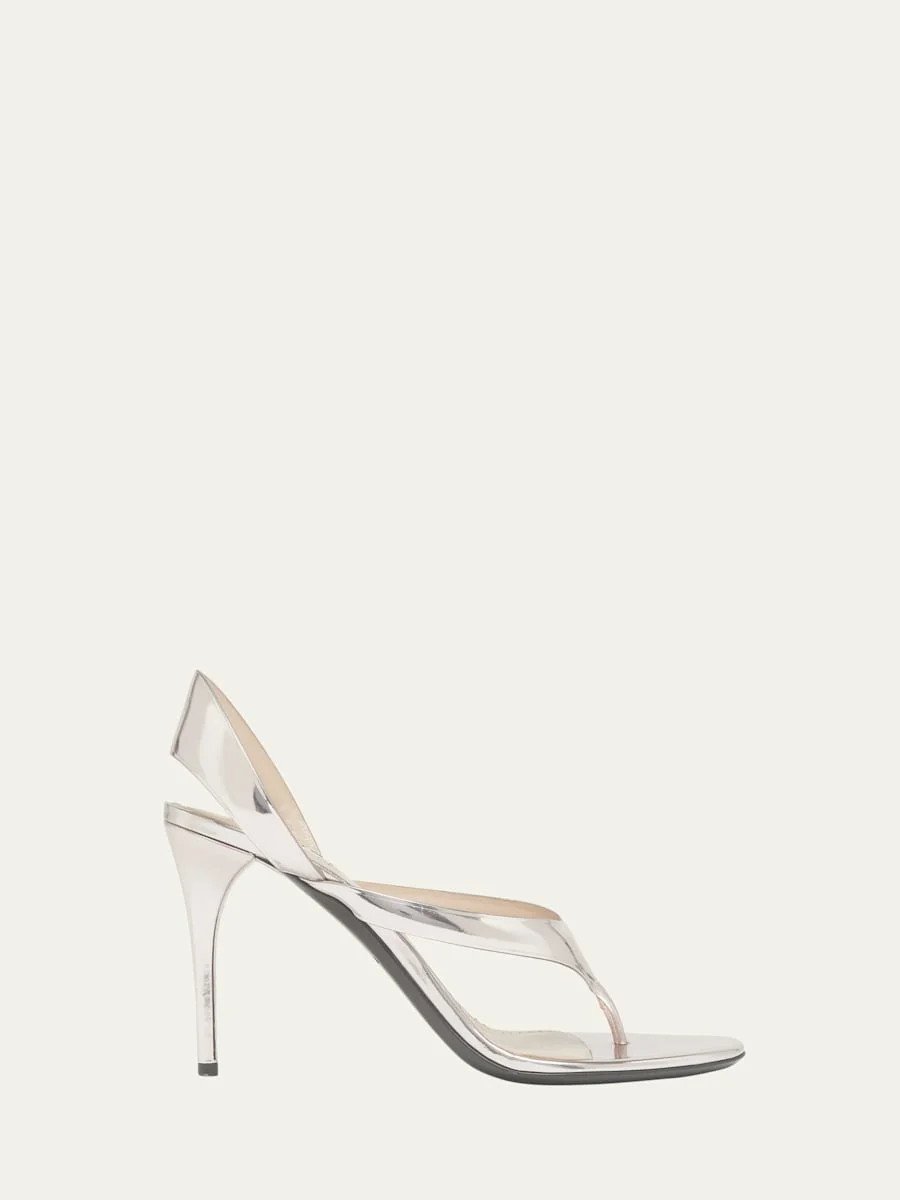 ALAIA "Tong" sandals in metallic leather 3.50 in / 90 mm stiletto heel Open toe Thong strap Slingback strap Leather lining and outsole Professional cleaning recommended Made in Italy