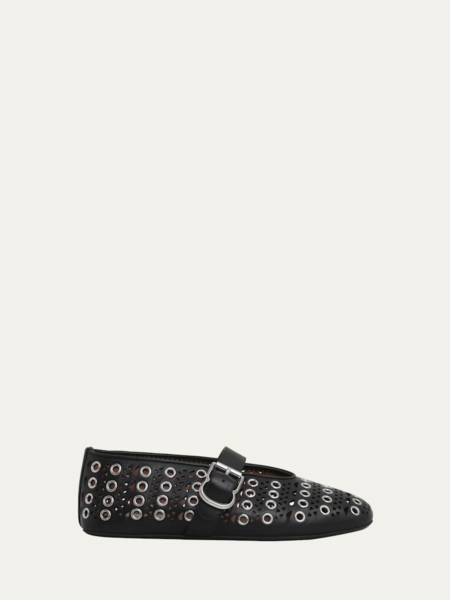 Vienne Buckle Eyelet & Laser-Cut Leather Ballet Flats
