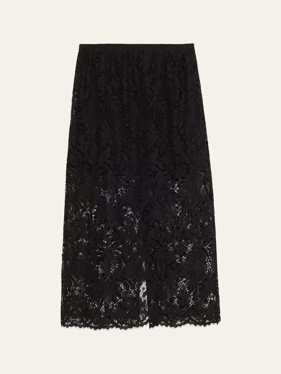 The "Lydia" skirt by A.L.C. is cut from archival French lace with a botanicalinspired pattern, with a builtin mini slip for coverage Highrise waistband Centercut back vent; approx. 17"L Hem falls below the knee Column silhouette Slipon style Nylon/polyamide/cotton Lining: Polyester Dry clean Imported