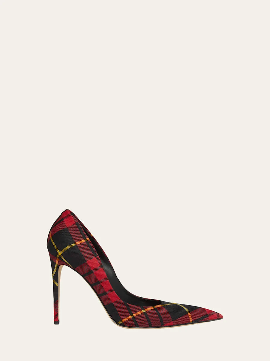 These pumps by McQueen are crafted from tartan fabric 4.00 in / 105 mm covered stiletto heel Pointed toe Slipon style Leather lining and outsole Made in Italy