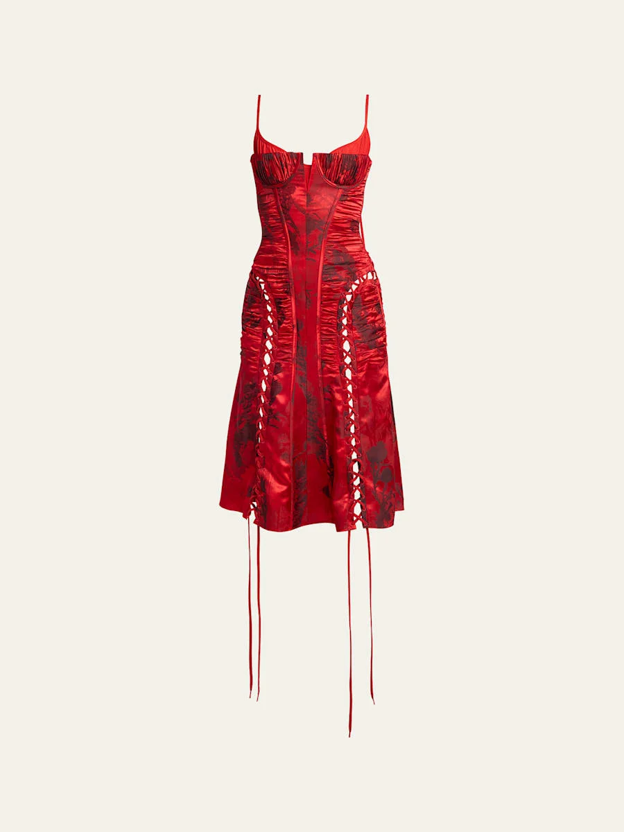 Certified Fluid Viscose Floral Jacquard Corset Dress