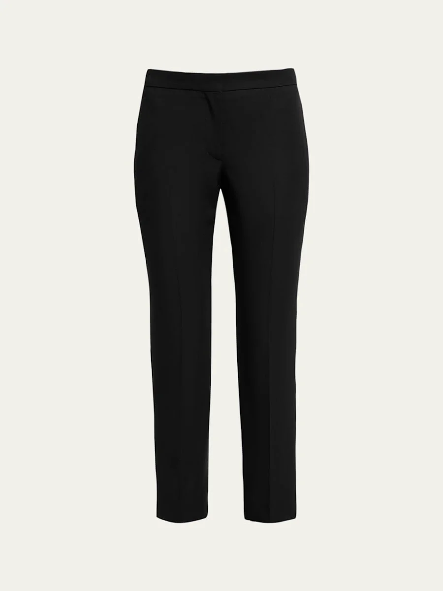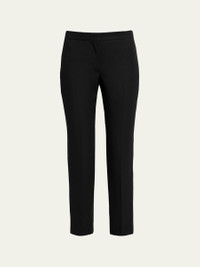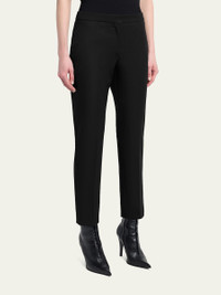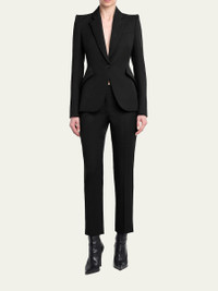 McQueen wool-blend ciagarette trousers Mid rise sits high on hip Side seam pockets Single back welt pocket Cropped at the ankle Straight legs Hidden hook/zip fly Wool/cotton Made in Italy Online Inquiries: BGS21_BA7S6| Store Inquiries: #5046817