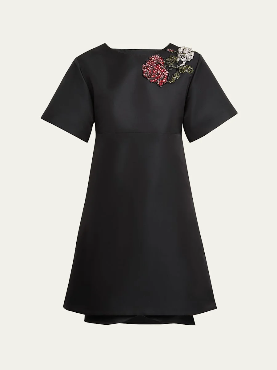Crystal Rose Short-Sleeve Taffeta Mini Dress
