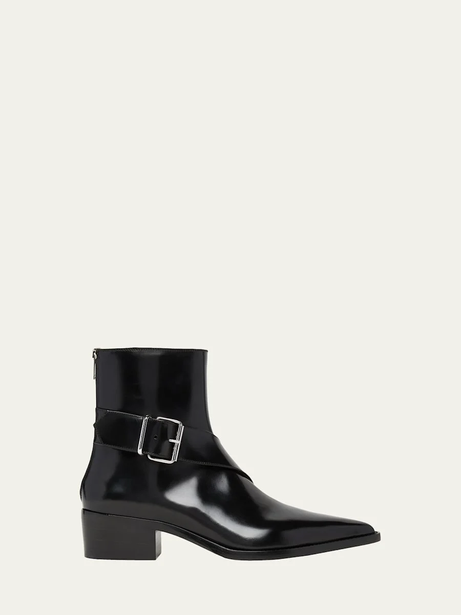 Men's Leather Buckle-Strap Zip Ankle Boots