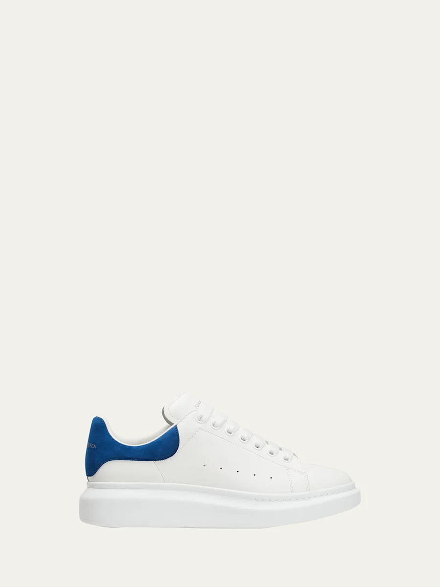 Alexander McQueen low-top sneaker in calf leather. Platform heel. Round toe. Lace-up front. Perforation detail at sides. Contrast suede heel counter. Logo detail at tongue and heel. Oversize rubber sole. Made in Italy. Online Inquiries: BGS21_N6A9G| Store Inquiries: #2922868