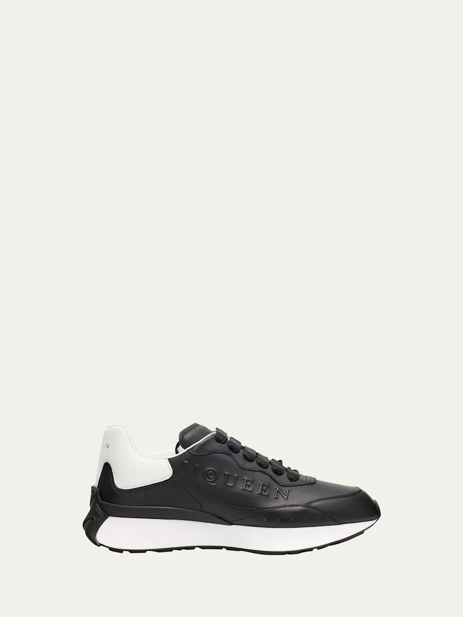 Note the tonal logo on the leather upper of this McQueen "Sprint" runner sneaker. Flat heel Round toe Lace-up vamp Logo on the backstay Padded collar Chunky sole Rubber outsole Made in Italy Online Inquiries: BGS21_NDHUE| Store Inquiries: #5041030