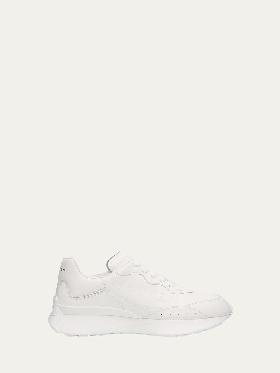 Note the tonal logo on the leather upper of this McQueen "Sprint" runner sneaker. Flat heel Round toe Lace-up vamp Logo on the backstay Padded collar Chunky sole Rubber outsole Made in Italy Online Inquiries: BGS21_NDHUE| Store Inquiries: #5041030