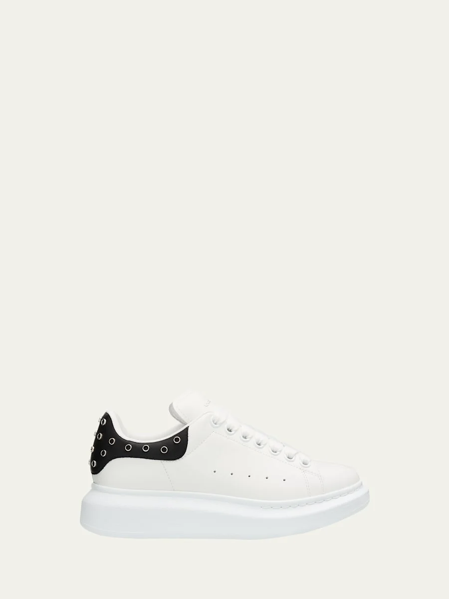 A statement silhouette from McQueen, these oversized sneakers are punctuated with contrasting embellished leather trim, striking a balance of street and sophistication Flatform heel Round toe Laceup vamp Large flat laces McQueen signature on the tongue and heel counter Perforated sides Contrast heel counter Oversized rubber sole Made in Italy
