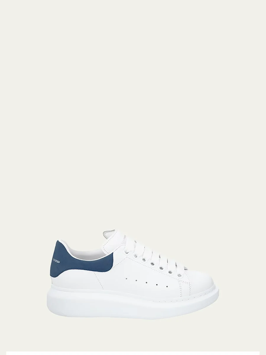 Alexander McQueen leather sneaker with colorblock heel counter. Alexander McQueen signature on tongue and heel counter Available in multiple colors. 1.5" platform heel. Round toe. Perforated sides. Large flat laces Lace-up front. Rubber sole. Runs small, order one size up. Made in Italy. Online Inquiries: BGS21_X58JA| Store Inquiries: #2005999