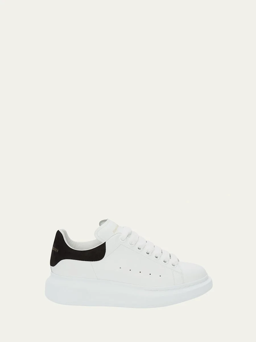 Alexander McQueen leather sneaker with colorblock heel counter. Alexander McQueen signature on tongue and heel counter Available in multiple colors. 1.5" platform heel. Round toe. Perforated sides. Large flat laces Lace-up front. Rubber sole. Runs small, order one size up. Made in Italy. Online Inquiries: BGS21_X58JA| Store Inquiries: #2005999