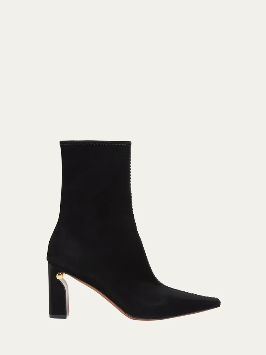 McQueen ankle booties in polyurethane and calf leather 3.15 in / 80 mm block heel Pointed toe Side zip eases dress Leather outsole Lining: Unlined Made in Italy Online Inquiries: BGS21_X6XQJ| Store Inquiries: #5041918