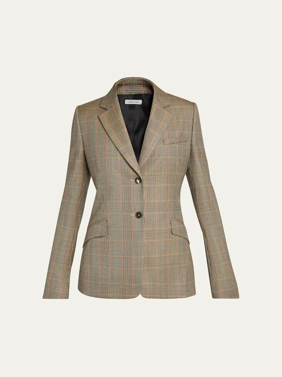Prince Of Wales Wool Single-Breasted Blazer