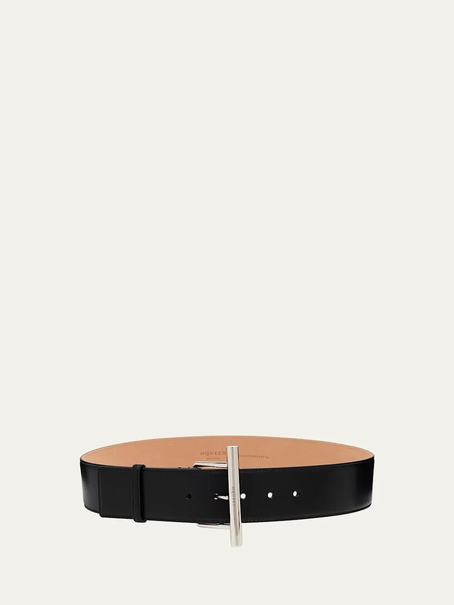 Alexander McQueen smooth calfskin leather sling belt finished with signature Cross-Bar buckle in silvertone metal, engraved with the McQueen logo Adjustable fit Silvertone hardware Wide width Leather Made in Italy Online Inquiries: BGS21_D520Q| Store Inquiries: #4894147