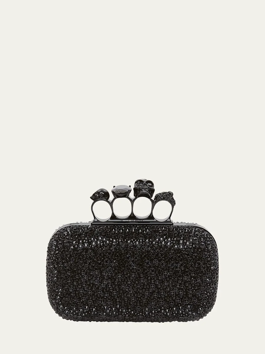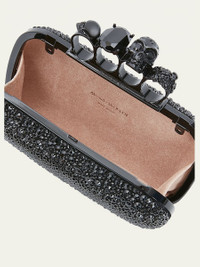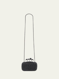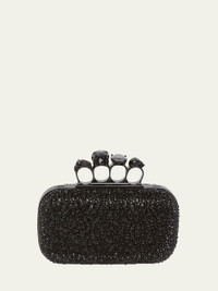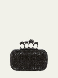 Alexander McQueen clutch bag in allover spike crystals and calf leather Detachable shoulder strap Framed top with signature skull four-ring knuckle duster; lift-clasp closure Approx. 5.1"H x 7.1"W x 2"D Made in Italy Online Inquiries: BGS21_V5GRG| Store Inquiries: #4324423