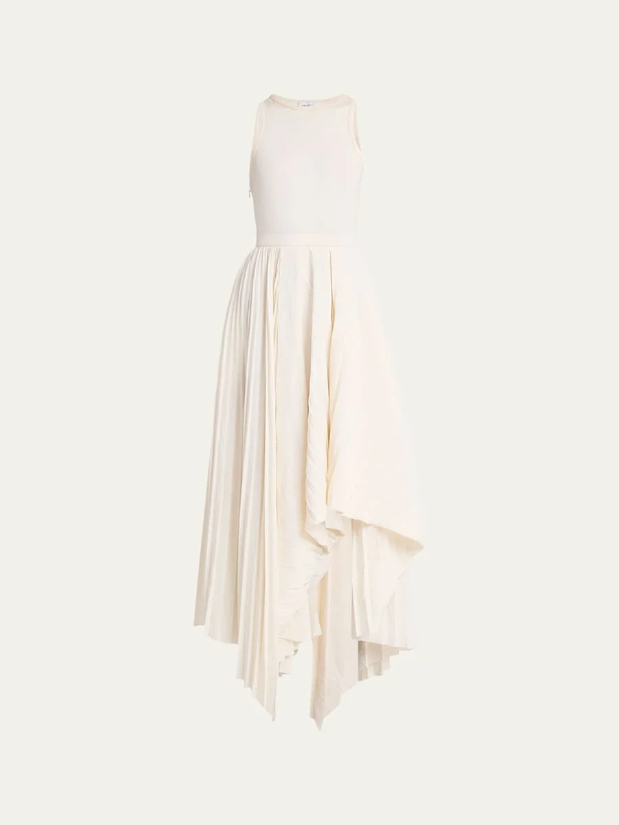 McQueen jersey dress featuring a pleated skirt with asymmetric draping High neckline Sleeveless Hem falls below the knee A-line silhouette High-low hem Invisible side zip Cotton Dry clean Made in Italy Model is 5'10"/177cm. Online Inquiries: BGS21_B9NH6| Store Inquiries: #4924888