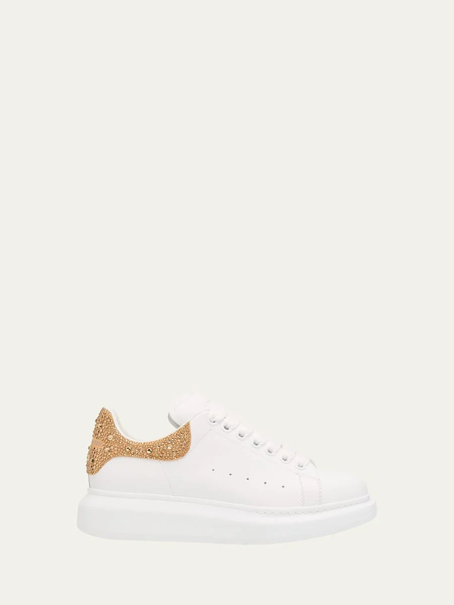 A tall rubber platform lofts a leather low-top sneaker from McQueen, with a removable, padded insole that provides signature comfort. A snakeskin-printed leather panel offers street style to the laid-back silhouette. 1.50 in / 40 mm no flatform heel Round toe Lace-up vamp Large flat laces McQueen signature on tongue and heel counter Perforated sides Rubber sole Runs small, order one size up Made in Italy Online Inquiries: BGS21_X6XQK| Store Inquiries: #5041917