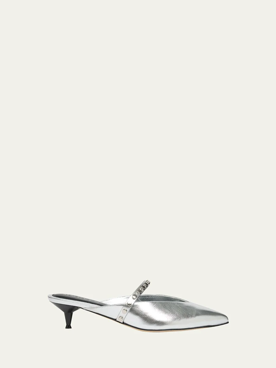 Studded Strap Metallic Leather Mules