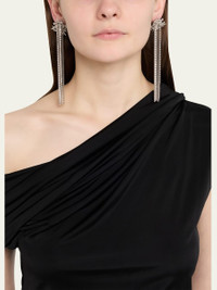 McQueen sunflower drop earrings are accented with chain and crystal fringe Made of brass with a silvertone finish Roundcut crystals Postback for peirced ears Made in Italy