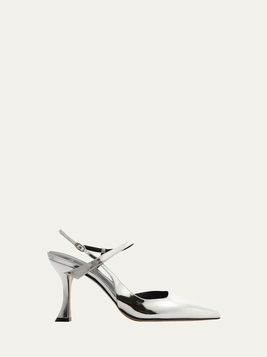 Made from specchio leather, the "Tita" pumps by Alexandre Birman feature a mirrored finish that elevates any outfit 3.25 in / 85 mm stiletto heel Pointed toe Crisscross bow detail Adjustable buckle ankle strap Leather lining and outsole Professional cleaning recommended Made in Italy Online Inquiries: BGS21_X7CWC| Store Inquiries: #5414290